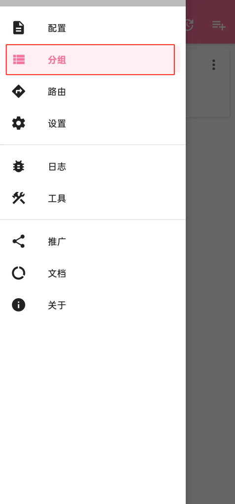 软件支持直接使用机场订阅链接来添加节点信息,如下图所示点击软件主界面左上角【三道杠】按钮,在弹出窗口点击【分组】,如下图所示: